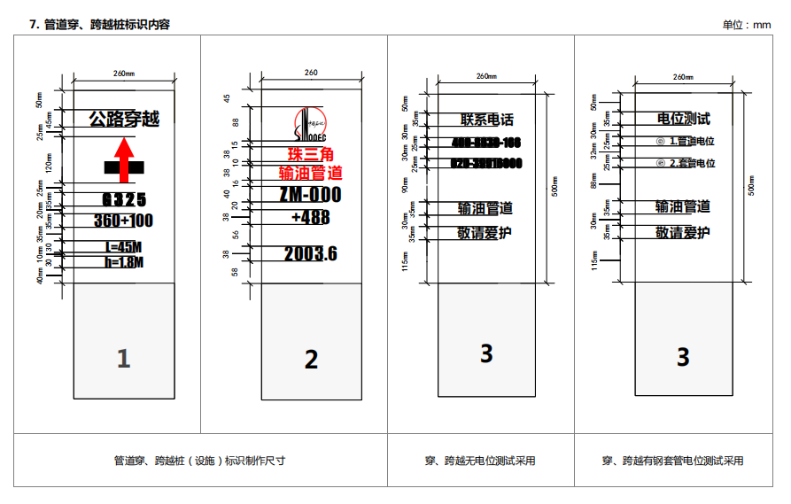6. 管道穿、跨越樁標(biāo)識(shí)內(nèi)容